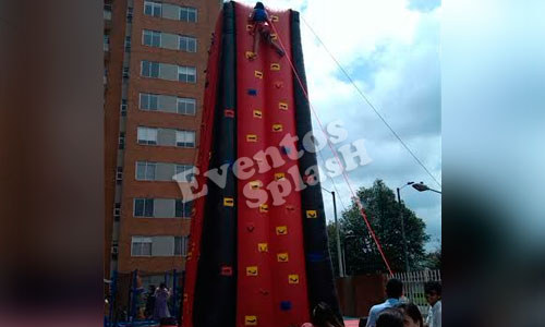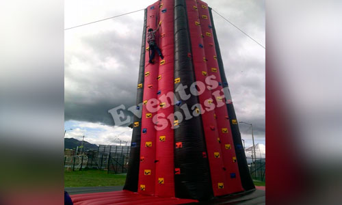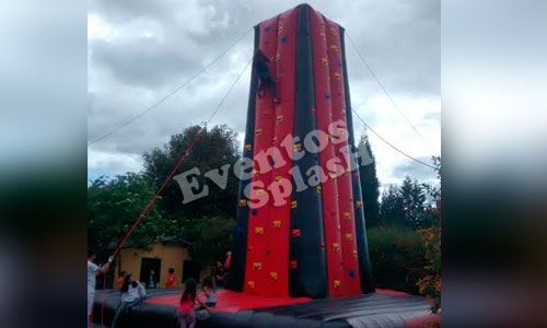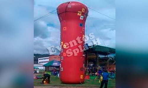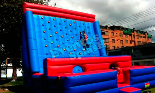 Alquilamos todo tipo de inflables: Rodaderos escaladores, muro de escalar inflable, castillos saltarines, toro mecánico. Ring de box, jumper metálico, cauchera humana, esferas acuáticas, piscinas de pelotas, orbotron, jumper de una sola vía. Diviértete escalando más de 9 mt de altura vive momentos extremos con nuestras atracciones porque en EVENTOS SPLASH encuentras lo que necesitas para tu evento llámanos y te daremos la mejor asesoría. EVENTOS SPLASH te ofrece la mejor torre de escalar inflable con una altura de 9 mt y un colchón de seguridad de 8 mt cuadrados y 4 carriles de ascenso.