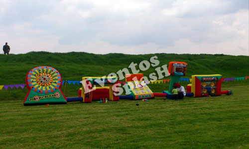 Especiales para trabajo en equipo, la podemos disfrutar tanto adultos como niños en zonas al aire libre, división de grupos, animación dirigida, juegos de integración por competencia. Integración con FERIA INFLABLE 10 juegos para el aire libre con sonido animadores especializados para manejo de adulto.