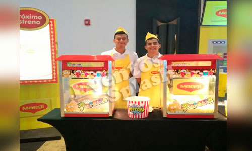 Alquiler máquina de crispetas en Bogotá, chía, Tabio, Tenjo, Cota, Funza, cajica, Villavicencio, Medellín Bucaramanga, Barranquilla, Cartagena, Cali, Pereira y resto del país. Maquinas ideales para eventos sociales, familiares, eventos empresariales, Deliosas palomitas de maíz dulces, acaramelado y de sal. Personal logístico especializado en máquinas de crispetas con la mejor presentación.